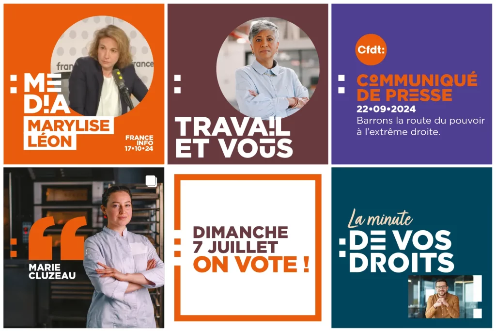 Vaadigm a développé le design system dédié aux réseaux sociaux pour la CFDT, définissant les règles graphiques, les formats et les visuels afin d’assurer une communication cohérente, impactante et facilement déclinable sur toutes les plateformes.